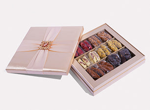 Unveil the pinnacle of opulence with our lavish gift box, a harmonious fusion of flavor and sophistication. Inside, delight in up to 40 exquisite biscotits, available in a curated selection of six decadent flavors. Encased in a satin box, and adorned with a resplendent rose brooch, it's a treasure trove of luxury, destined to impress.